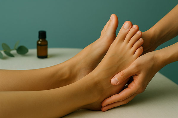 Einer warmen Fußkompresse folgt eine tiefenentspannende Massage die verschiedene Techniken miteinander kombiniert. Durchblutung und Lymphfluss werden angeregt und Vitalpunkte stimuliert. Besonders für Menschen, die im Alltag viel stehen, die Füße viel Belastung erleben, ist diese Massage eine wahre Wohltat.